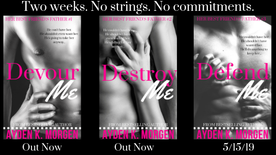 Today is release day for Defend Me, the third and final book in the Her Best Friend's Father series! Check out all the details below, read an excerpt, and enter the giveaway. Plus, Devour Me (Book One) is FREE through May 17th!
