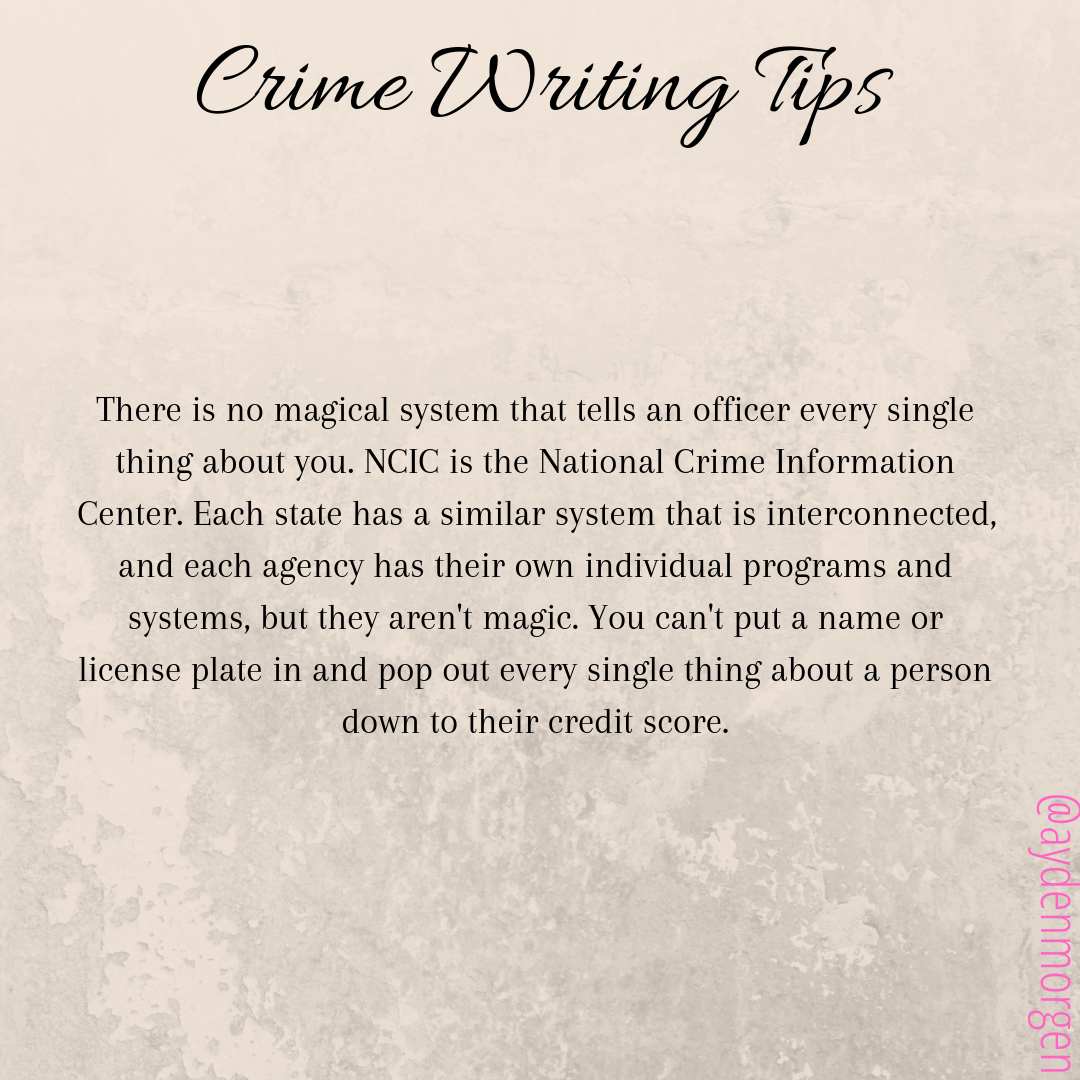 One of my biggest pet peeves when reading is when an author creates some "magical system" that tells a police officer everything there is to know about a person. Having spent most of my life in the Criminal Justice field as a student and then as a professional, I can't express enough how completely unrealistic and inaccurate this is!