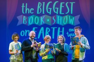 The Biggest Book Show On Earth 2019 at The Hafren, NewtownAuthors Lucy Owen, P.G.Bell, Claire Fayers, Eloise Williams and Max Low. Photo: Welsh Books Council/Tall & Short Photography
