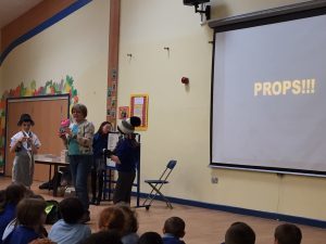 From Newtown it was back down to Abergavenny to visit Deri View and Llanfoist primary schools with Bookish Bookshop. We had great fun playing with props and inventing stories.