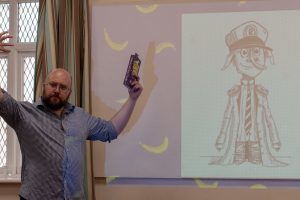 Want to be an author? You need a proper serious thinking positionThe next day I was off to Newtown for the World’s Biggest Book Show. Organised by the Welsh Books Council, I shared the stage with four amazingly talented authors. PG Bell, Eloise Williams, Max Low and Lucy Owen. Max is an author-illustrator, published by Graffeg Press and this was his first ever event. He is hilarious and the children loved him. Definitely a name to watch out for.