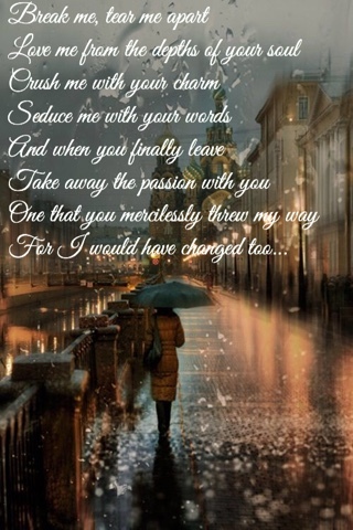 My vision seems to be cloudedI see things through a pink hazeFor unwavering things I was moulded Yet how beautiful it is in my smoldering gaze