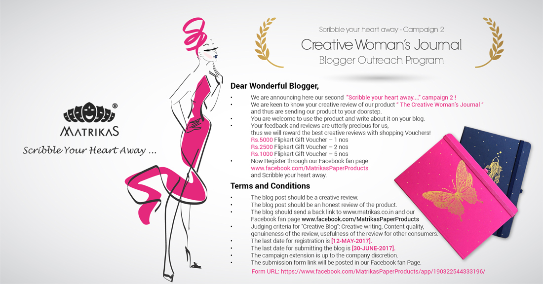 Or if you are a blogger, hop onto their Facebook Fan page for participating in the 'Scribble your Heart Away' campaign-2 and get a chance to review the journal. There are prizes to be won too. Take a look!