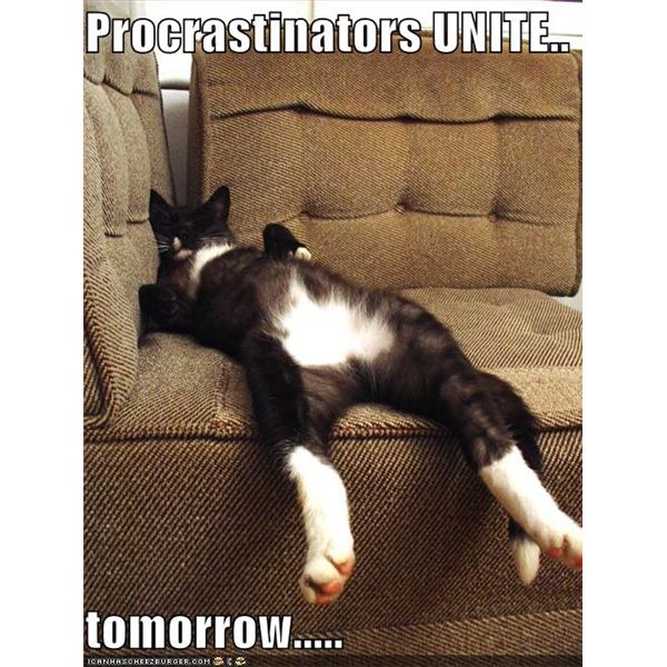 Image SourceI sat down in front of my laptop to write the P post and then procrastinated for hours. I couldn't decide what to write for Letter P. So I decided to make the controversial 'Procrastination' the star of my Letter P post.Then I procrastinated again for long thinking what I should write about procrastination. Procrastination is after all the biggest wall that stands between a writer and his/her finished novel. I went surfing the internet to get some ideas, ended up watching a movie, saw a few funny videos and then slept at my desk. I realized I had a serious case of procrastination. I decided to laugh about this incurable disease.