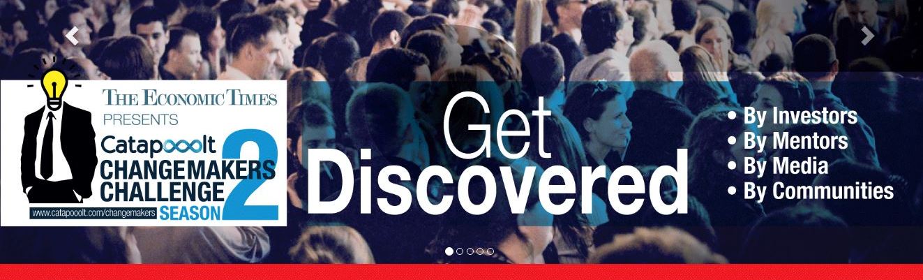 Enter the Catapooolt Changemakers Challenge Season 2 presented by the Economic times and reach for the stars. Get discovered in a major way. It is India's own unique crowd funding powered hunt for innovative early stage start-ups. Over eight hundred plus investors and more than fifty startup ecosystem partners support it.