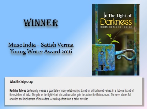 From a writer’s perspective – In The Light Of Darkness is the most honest piece of writing I have ever done. Since I wasn’t even sure that I would be finishing this story, let alone send it out to a publisher, so I wrote what I wanted to. And that honesty did wonders for this story. To be that disconnected with ‘what would someone think of this’ keeps getting more and more difficult as you get published more.From a reader’s perspective - This is a story we don’t read often these days. I was told that there may not be an audience for a mother-son story in a world dominated with romance and thrillers. I am glad that isn’t the case; going by the reception this book has received. Perhaps, that is why it has won me the Muse India – Satish Verma Young Writer Award 2016.