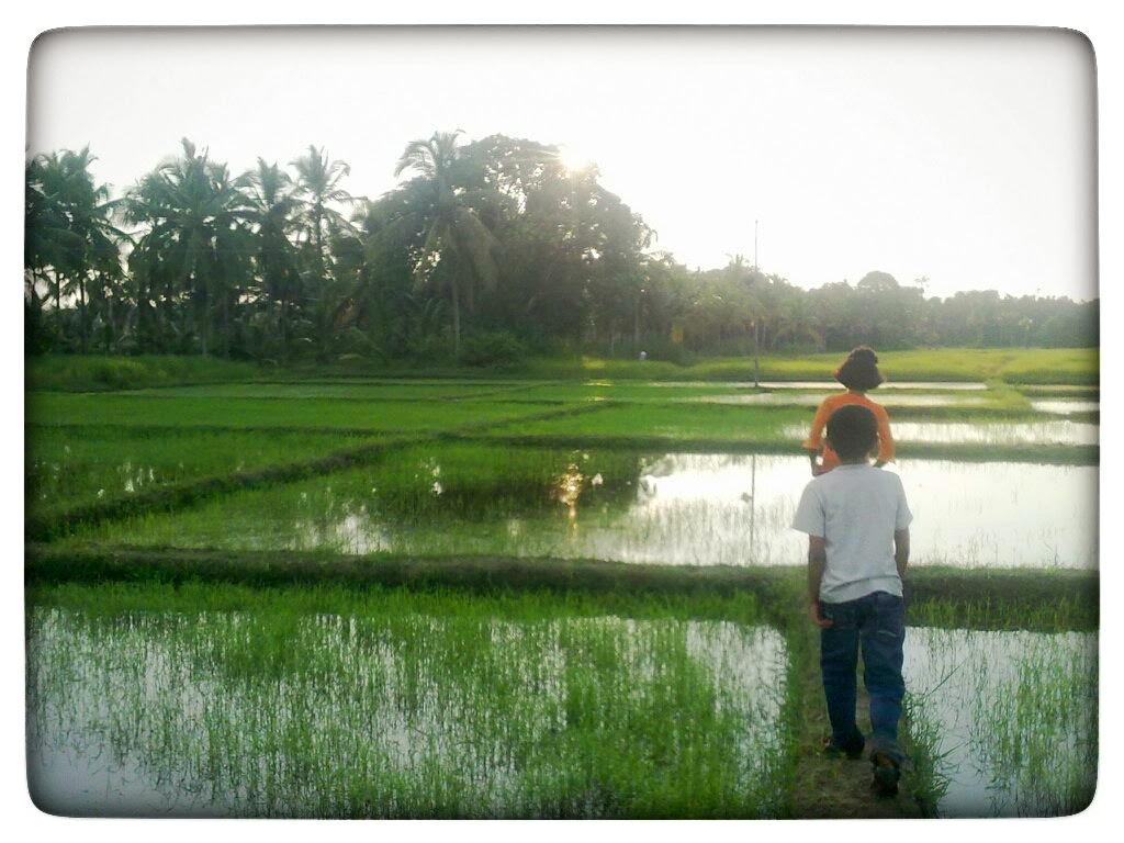When I decided to set out on an evening walk along the narrow bunds in the paddy fields, my niece and nephew along with my son were excited to join me. Though my niece and nephew lived there and quite often took these kinds of walks, my son was thrilled to be walking along the serene paddy fields, after the hustle and bustle of the city he was used to.