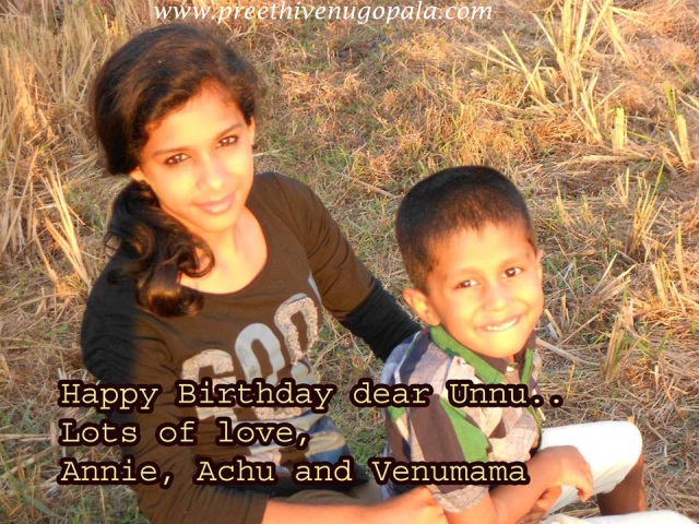 During my final year of engineering, I had enough distractions. The major one was the presence of a tiny angel who demanded to be carried around all the time. She wanted to roam everywhere perched on my hips. I was her favorite person in the world till her mom arrived home. At that moment she would declare , “I don’t like Annie at all.” She transformed into a veritable monster if her needs were not met. I was even jealous of her for a while. Until her arrival, I was the youngest and most pampered in the family. But her sweet smiles and baby talk conquered us all. She was and is still the star in our family. I love her like my own daughter.She liked to call everyone by the special names she had selected for us. I was christened ‘Annie’; she was to be called Unnu. The pet name Minnu which I had selected lovingly for her was quickly conferred on her doll. Her mother became Unnuamma, father was Unnuacha, and Grandparents were Unnuachacha and Unnuammamma. My brother Sunil became chunnammamma. My cousins Soumyan became Cho mama, Suvarna became Chuchi and Swapna became Choppechi for a long time.