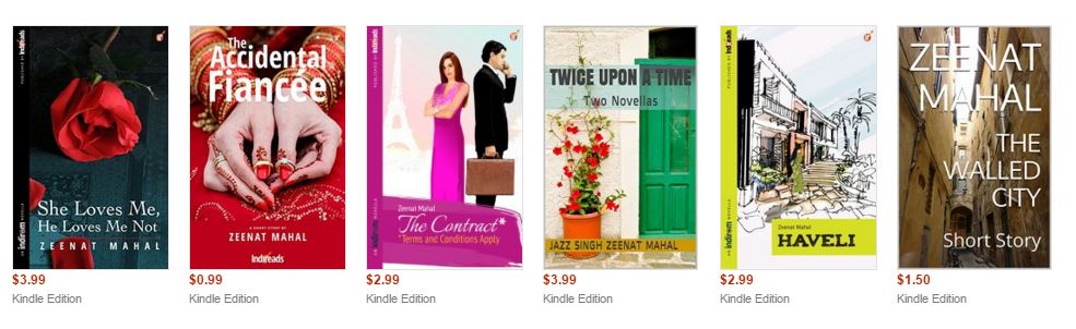 Zeenat Mahal was born in Lahore, Pakistan. She has published three novellas, and a short story with Indireads: Haveli, The Contract, She Loves Me, He Loves Me Not, The Walled City and The Accidental Fiancee. All of her books were in the TOP 100 BEST SELLING titles on Amazon, and two of them are still in the TOP 10 BEST SELLING titles. She Loves Me He Loves Me Not reached number 1 on Amazon Asia bestsellers. Her books were covered by Kitaab International, Bravebird Publishing LLC, Dear Author, The Sunday Observer, Readomania, and many bloggers and newspapers. She was also interviewed by the BBC and Sunday Observer Srilanka, among others. Her short stories have appeared in on-line literary magazines like Running out of Ink and The Missing Slate. Zeenat has a creative writing degree from London, and when she isn't writing, she's reading.