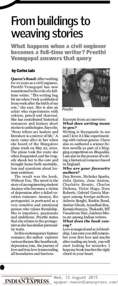 Exposure and fame does follow success for a writer. I too had my moments and was featured in many online interviews after the release of my book in June. I also got press coverage in The New Indian Express on August 12.
