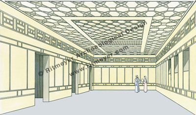 The Reception Room of the Palatial Mansion, which would better be described as a hall, measures 33 feet by 21 feet. Because of its large size, it is assumed that it was used to receive guests and for various functions. The walls of this magnificent room were decorated with white stucco. The northern wall was in the best state of preservation, with the stucco remains preserved almost to the height of the ceiling.