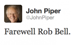 To my knowledge, until now John Piper has not publicly addressed the controversy that erupted over his infamous tweet, "Farewell Rob Bell", on February 26, 2011. The only thing he has said, via Twitter, is that Michael Krahn's article was "pretty close."