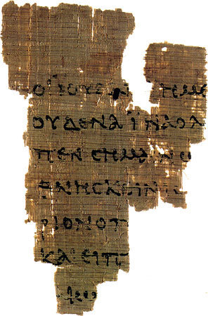 Up through the end of 2011, the following would be the answer: A papyrus fragment that had been sitting in unprocessed ancient documents at the John Rylands Library of Manchester University, England, is most likely the earliest NT document known today. Known as P52 or Papyrus 52, this scrap of papyrus has John 18:31-33 on one side and John 18:37-38 on the other.