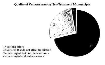 The smallest category by far is the last category: meaningful and viable variants. These comprise less than 1% of all textual variants. Yet, even here, no cardinal belief is at stake. These variants do affect what a particular passage teaches, and thus what the Bible says in that place, but they do not jeopardize essential beliefs.