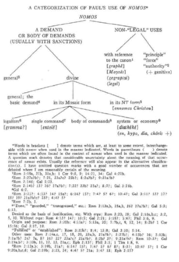 A helpful schema from Douglas J. Moo's "'Law,' 'Works of the Law' and Legalism in Paul," Westminster Theological Journal 45 (1983): 76:
