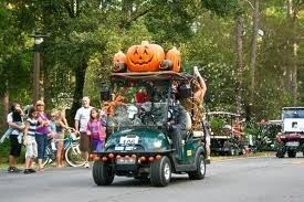 ANYHOO we planned to decorate her golf cart for trick or treating, a regular traveling Halloween show akin to a parade float of horrors, had we succeeded. But we ended up not having time to decorate which turned out to be a good thing because it was later decorated with costumed children...several...enough to eventually burn the engine out and kill our fabulous transport. Her husband was not amused.