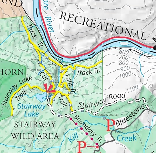 Blazes: Mid State Trail is orange, Gamble Run Trail is red.