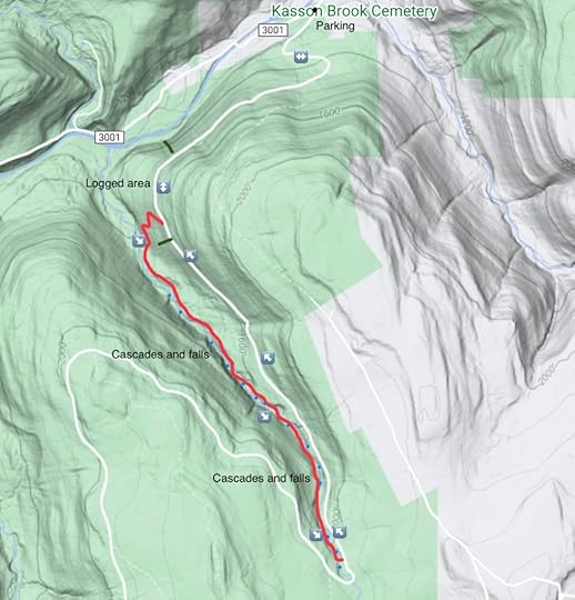 From the parking area, simply follow the gated forest road as is winds its way up the plateau. There are lots of wildflowers in the spring and summer. The road levels and reaches a logged area with some views. The road begins to veer left. Here, look for logging grades descending. Follow them as best you can, as far down as you can. Bushwhack down to the brook.