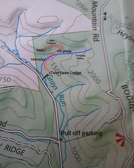 Another route: I’ve heard it is easier to hike in from the top, from Bodine Mountain Road, but I did not go that way.