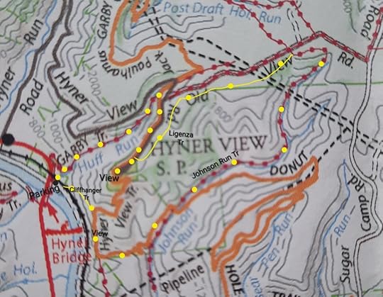 Blazes: Donut Hole Trail (DHT) is orange, other trails are yellow.