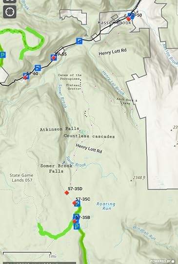Length: Various depending on where you start, from Windy Valley Road (Kasson Brook on map) you can expect to hike over 13 miles if you go all the way to Atkinson Falls. The hike is shorter if you start from the parking area at 57-35C on the map.