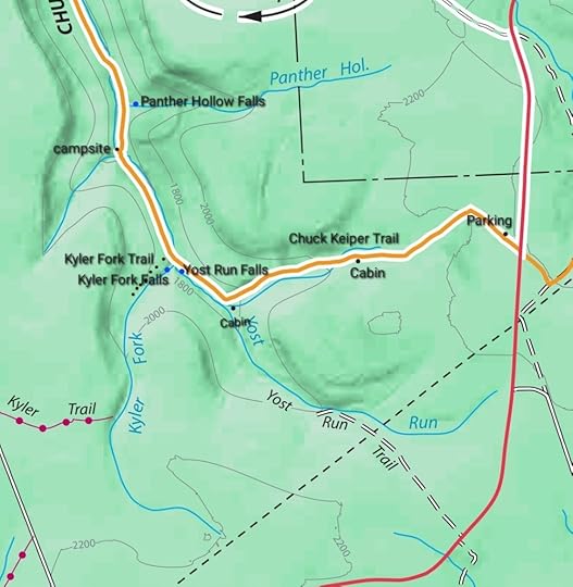 You can follow unblazed Kyler Fork Trail above Kyler Fork Falls to see more cascades. A proposed 300+ mile backpacking loop in the PA Wilds is routed to come through here.