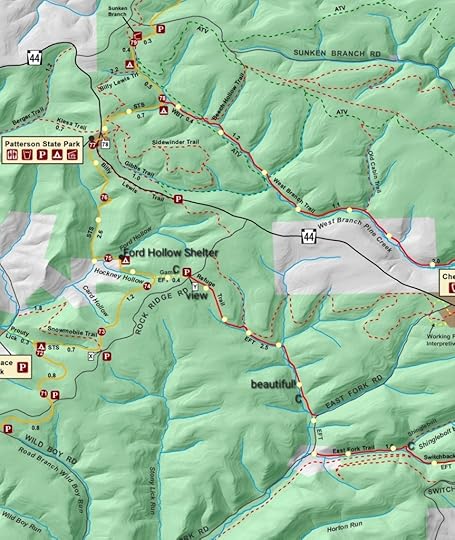 The STS makes a steady climb up a bucolic forested valley with a small creek. One great thing about this loop is that you are often near creeks, though they can be a trickle or even dry up in summer. Cross PA 44 and hike through Patterson State Park. The STS is level but then descends into a gorge with a seasonal creek. Hike up into Ford Hollow which is usually flowing. Ford Hollow Shelter is a sublime spot, peaceful, isolated, and serene. Elk can be seen or heard here. It is an ideal place to camp.