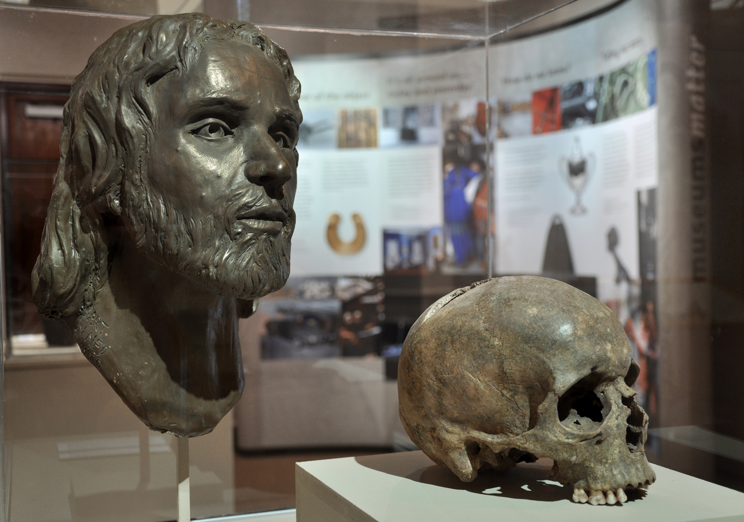Photograph courtesy of the Armagh County MuseumTake item number 6, for example. A human skull and reconstructed head. Who was that man?