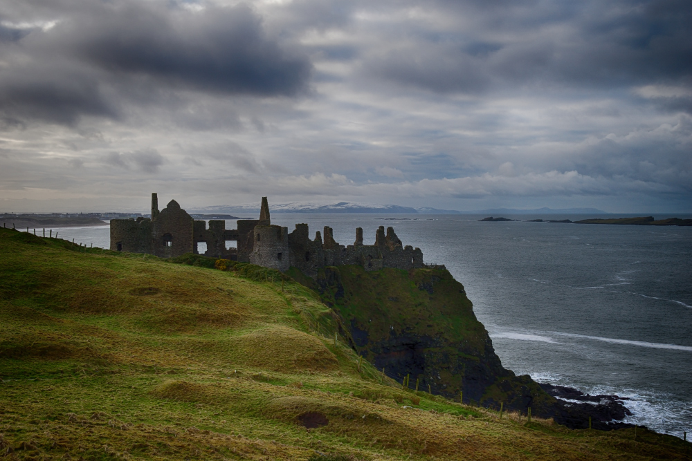 Our first stop along the road was Dunluce Castle. The first time I saw this place, thirty odd years ago, (some years odder than others, believe me) I was driving the coast road from Portstewart to Bushmills and didn't know it was there. I turned the corner and BAM - this amazing castle on a cliff edge just sitting in a field. There was no wall or fence around it, no visitor centre, no cover charge - just this mad castle that you could walk freely around. Today the castle is still as splendid. So much so that it has been used, with the help of CGI technology, as a set for Game of Thrones - representing House of Greyjoy.