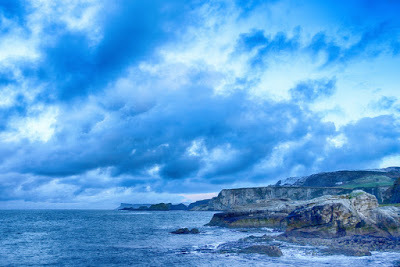 The sun was at it's highest but at this time of the year, at this latitude that's not saying much. Huge white clouds chugged across the sky accentuating the gorgeous landscape and providing a feature all of their own. Precious chunks of blue sky peeked from between them and brightened patches of a pewter ocean to Azure.