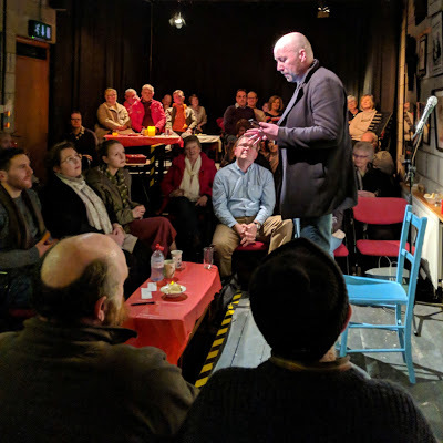 First up is Poet Mel Mc Mahon, originally from Lurgan reading poetry from his book Out of Breath. I can tell from the pin-drop silence that he has connected with the audience and he carries us along with his mastery of words.