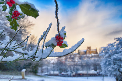 She only came out today because she wanted to see the Christmas lights in town and it's mild. Milder than last week, when the snow sent slivers of ice into her very marrow. Thank heavens for the thaw and the wee bit of winter sun, gaudy and ineffective it may be, but it still gives her a lift.