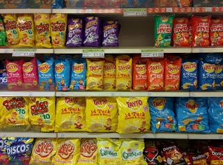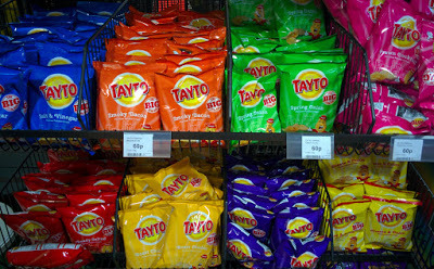 The North of Ireland wins the prize for having the biggest range of flavours of crisps that I've seen anywhere in the world. In recent years, the US has improved, but when I first landed in California there was only salted or plain (a waste of a good potato in my opinion!), salt & vinegar, sour cream, and BBQ flavours. Then Lays brought in a few more flavours - my favourite being lime flavoured. In Canada, Lays had a few more varieties and I loved the dill pickle, but still, there was no sign of the delicious range available north of the border in Ireland (or east of that border if you're situated in Donegal!)