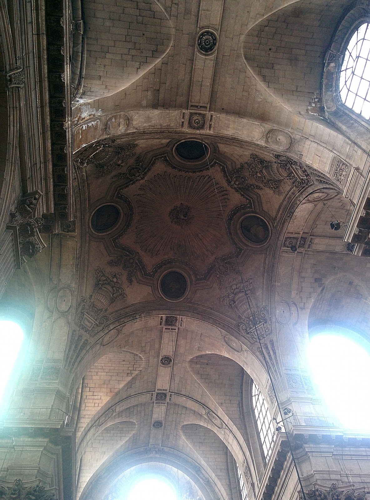 So much to see in this church, like where the french Revolutionaries tried to eradicate all references to religion from the church and turn it into a temple of reason. Obviously, this stain glass window was too high up for them.