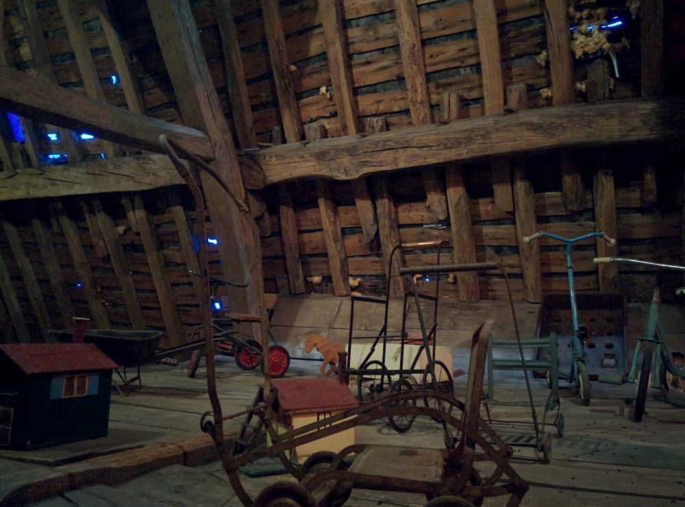 We even got to go to the attic, which had old toys stored in it - what else! It reminded me of the attic in my parents home with all our old toys in it - except ours were smaller and less castley!