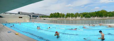 The Josephine Baker pool was crazy full when I went there a couple of weeks ago - before the heat wave, and it was hard to enjoy doing dedicated laps. It was probably fine to flop about in with your friends though I cannot imagine what it must be like now. I'm using the photo from their website. Even with a fisheye lens, it looks pokey, and it had at least 5 times as many people in it.