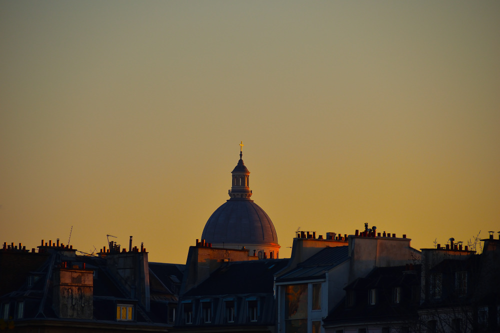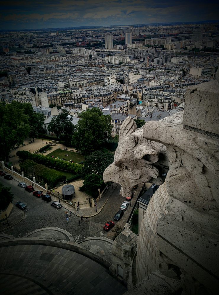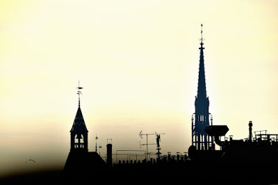 As our Belle Nouvelle Ami took us to the sixth apartment, I saw what looked like a man standing at the top of a high tower. It seemed to be a statue, but was odd because it was not balanced-out by a figure on the other side. Where was the symmetry? With that fuzzy head you get with jet lag, I wondered was I seeing things? My hear rate accelerated as I remembered first a story my sister told me about seeing ghosts in Prague, then a story my Mum had told me about being first on the scene of someone who'd jumped/fallen from a high building.