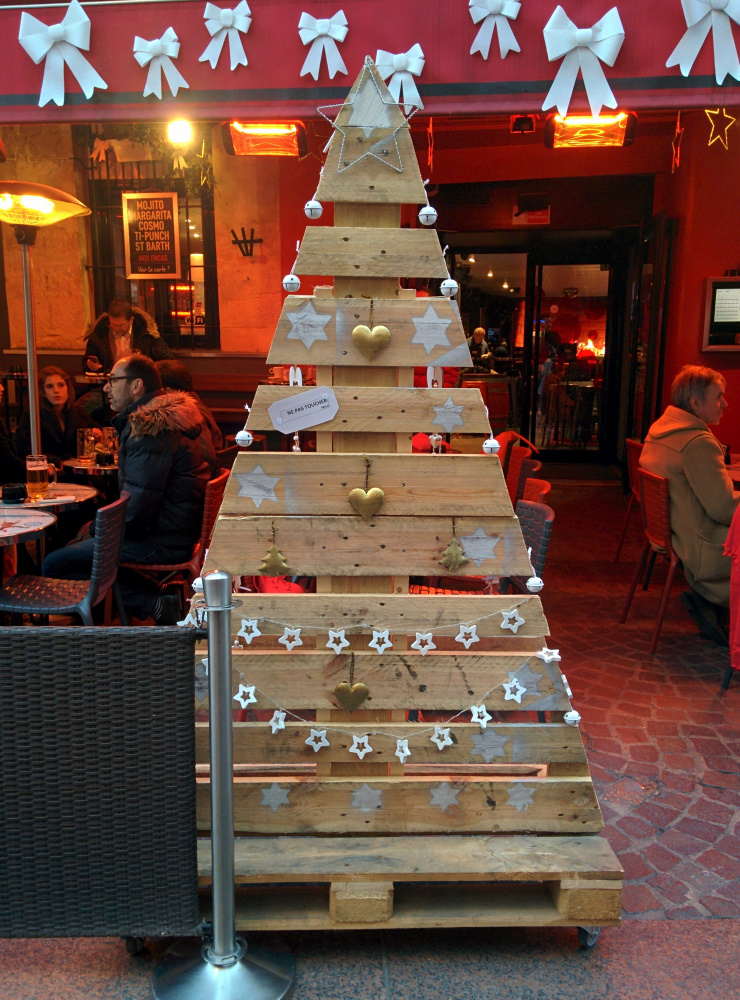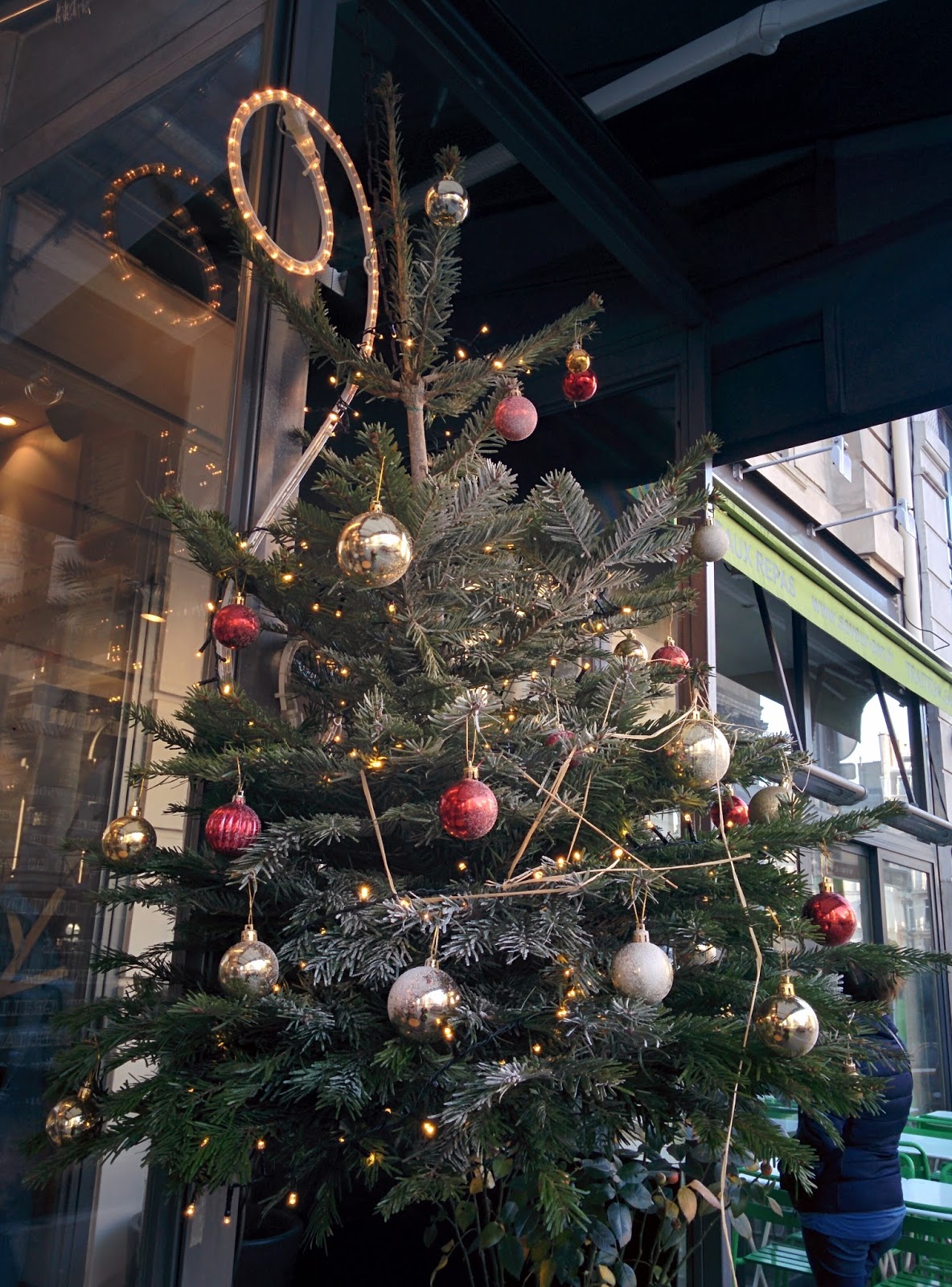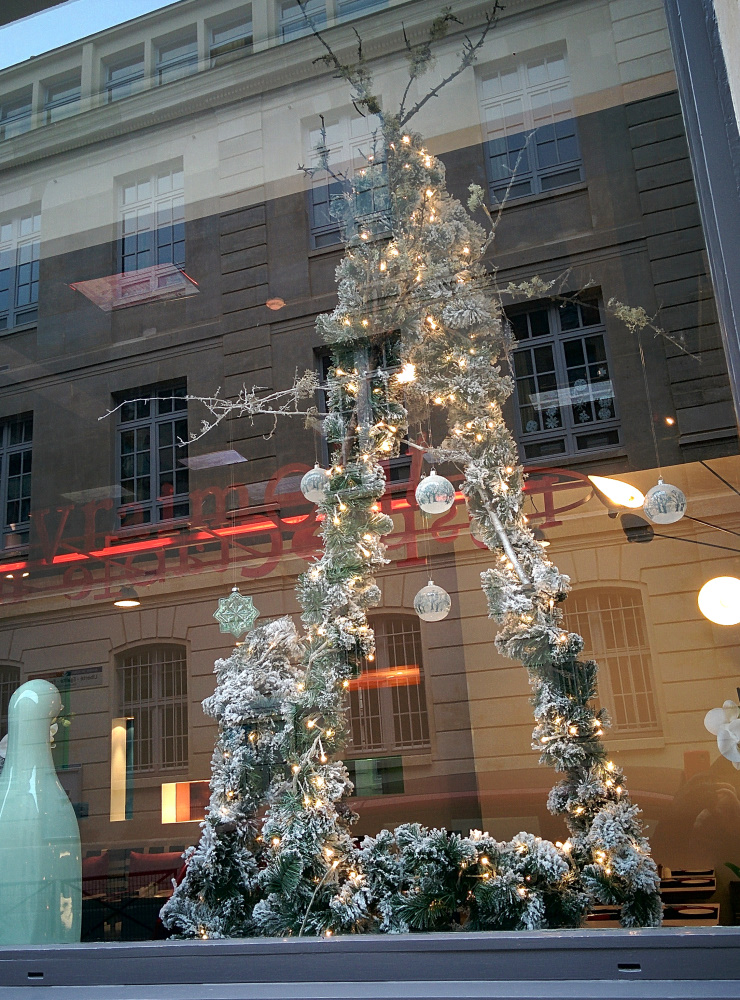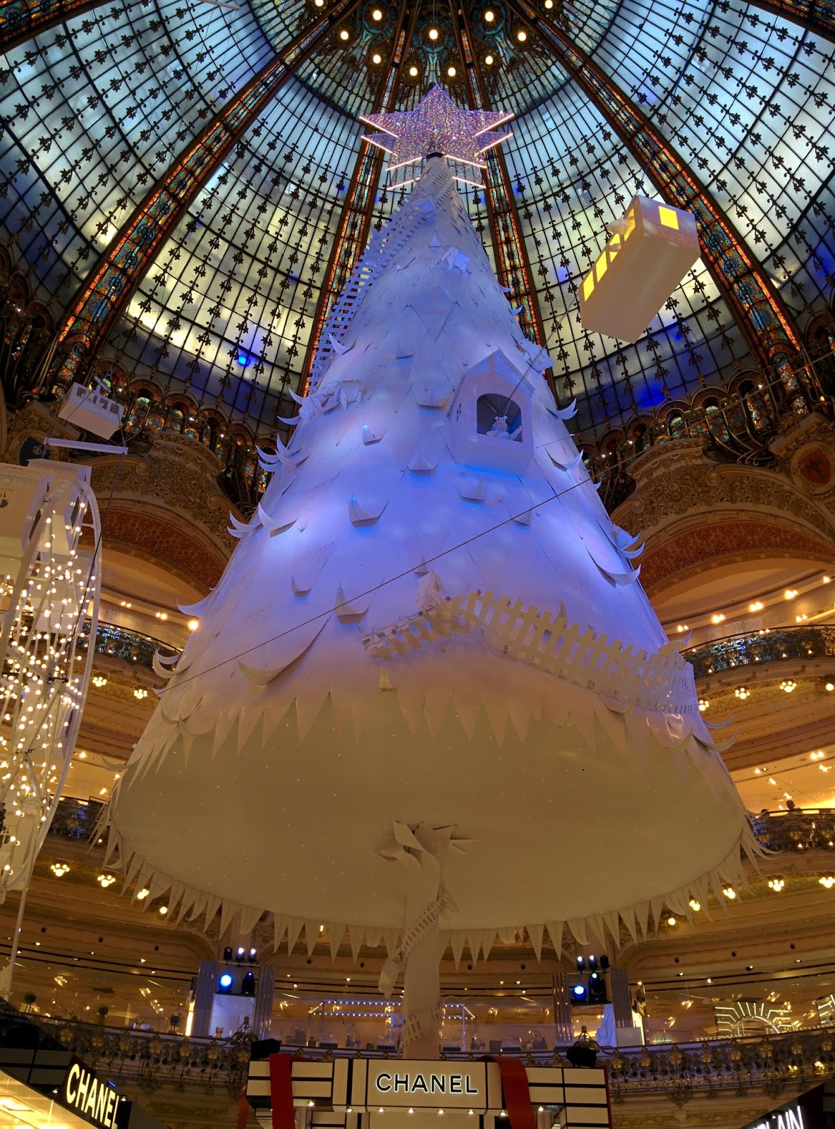 The most universal symbol of Christmas here in Paris is without a doubt le sapin, the Christmas tree. Galeries Lafayette has a giant paper one beneath their stunning stain-glass dome.