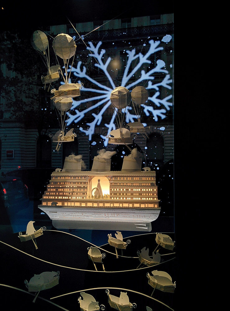 The Galeries Lafaytette Paris has combined art, Christmas decor and environmental education in their display, which celebrates a polar winter to raise awareness of climate-change.