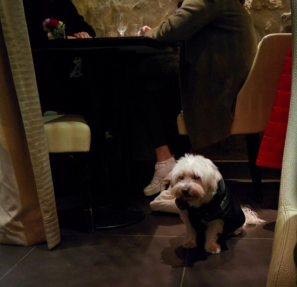 I was really surprised to see dogs inside restaurants, even fancy ones - by fancy I mean "10th wedding anniversary" fancy. We aren't just talking "service" dogs here. It seems to me that concept is unknown to the French. All dogs are service dogs here.