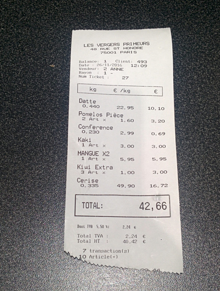 I remembered that the cherries had said "4€99." Obviously the cashier had typed an extra zero when typing in the price...right?