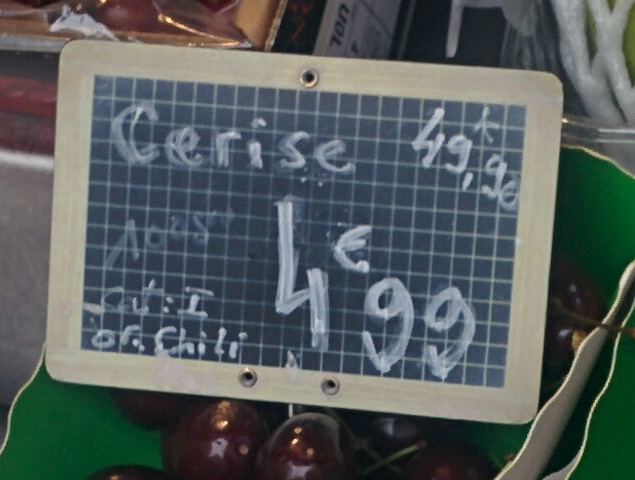 So, armed with the French vocabulary to say, ever so politely, "I think you've made a mistake and overcharged me..." I headed back to the shop. But to my horror, I realized when I saw the sign close up that, in fact, the cherries really were that price.