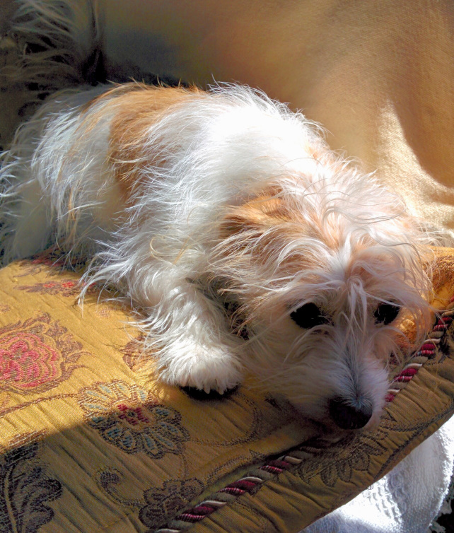 And of course one is never enough! She likes to lie on a golden pillow -mais bien sûr! Actually Rhubarb doesn't know any french...but she does know how to spell, "Walk!"