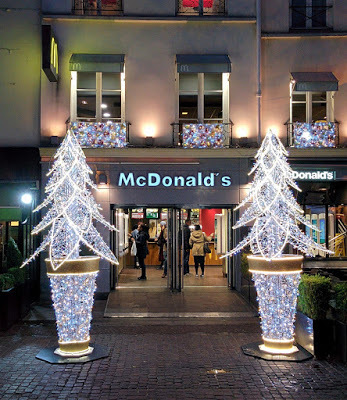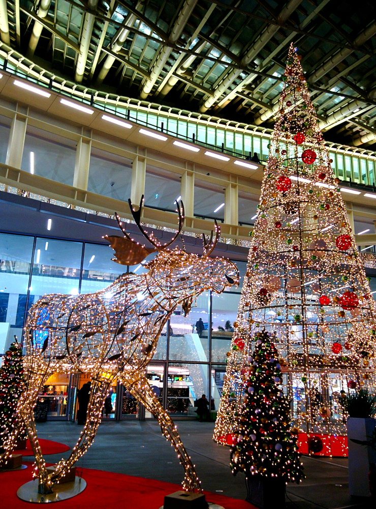 All the decorations are made from paper. I wondered if it was to highlight the importance of recycling. Unfortunately, the website falls short in its explanation of why the artist (yep, a real artist was commission to create the display, not just someone from PR sticking up tinsel in-between interviews for hiring seasonal staff!)