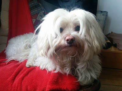 I shudder to think what it would be like to bring My Mums dog Rhubarb into a restaurant! But she too is a cutie-pie and I have to include a picture of her.