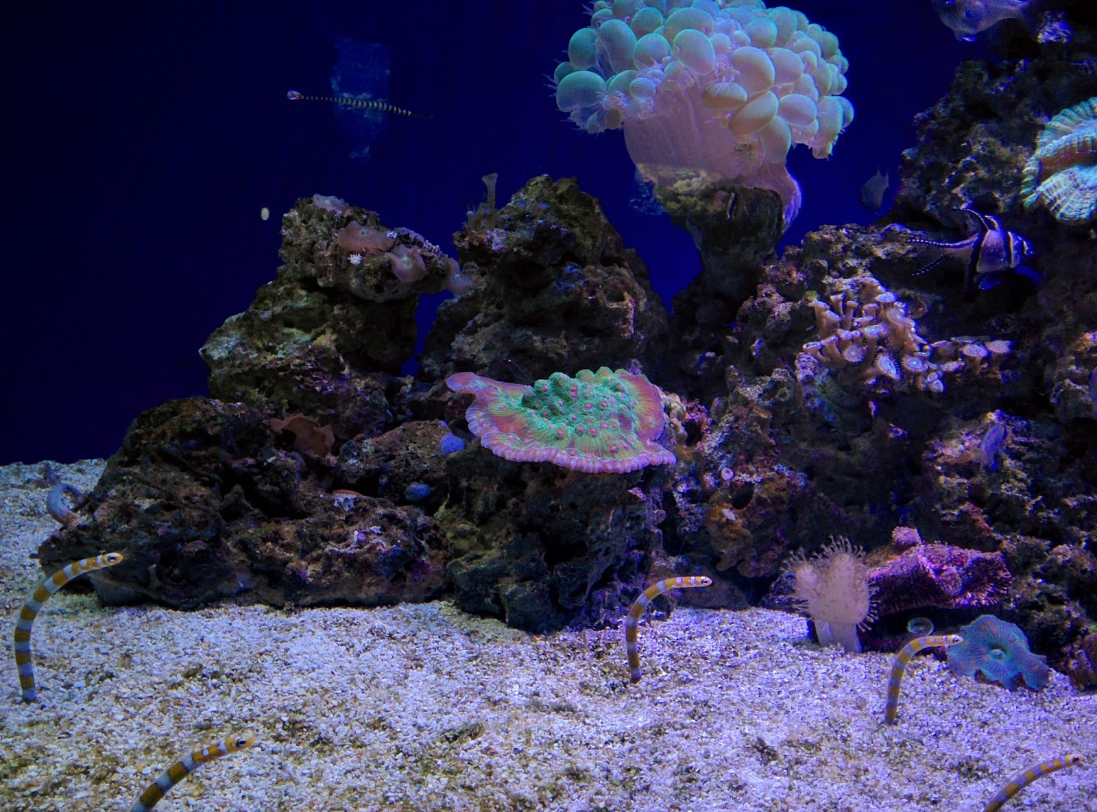 Maybe a blanket ban on photographs is what's needed. But at the touch tanks I asked permission from the staff present. This was before I'd even learned about the infrared, so I was trying to be careful! They said it was okay to take photos here as I petted the starfish - they feel kind of crusty, and not one bit slimy, as I'd imagined. I never touch anything when I'm scuba diving - you just never know when you'll harm or be harmed!
