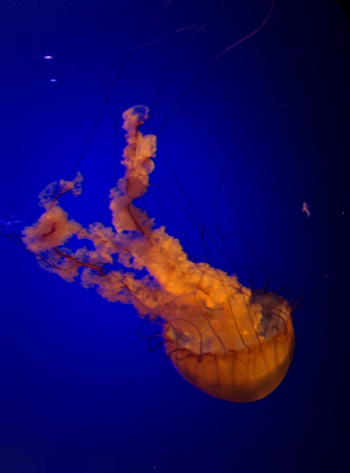 I will be much more careful in the future. Since I'd taken the photos, I think I should share them but urge you not to do what I did. I'm still not sure which photos were okay to take and which weren't. Yes, there are signs but with all attention being drawn to the sea creatures, they can be hard to miss. Did I already mention - I feel terrible at putting the wee critters in harms way?Maybe a blanket ban on photographs is what's needed. But at the touch tanks I asked permission from the staff present. This was before I'd even learned about the infrared, so I was trying to be careful! They said it was okay to take photos here as I petted the starfish - they feel kind of crusty, and not one bit slimy, as I'd imagined. I never touch anything when I'm scuba diving - you just never know when you'll harm or be harmed!