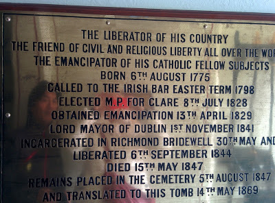 A pretty impressive tribute - and rightly so. This plaque explains it all, but the point to note is that he won religious liberty for the Irish people.