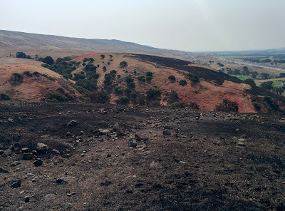 In the pictures above and below you can see some native flower seed-heads that have escaped the burn. In the background of the photos below the green of the golf course looks so vibrant, yet ironically it is more harmful to the Bay Checkerspot Butterfly than the fire, because it disrupts their habitat and doesn't support the plants the Bay Checkerspot needs to feed on.