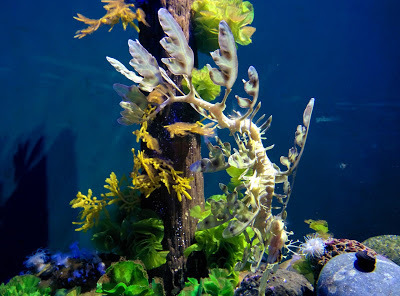 At this point I was a bit worried. I confessed to her that I had only noticed some of the signs after I'd taken a picture (without flash but probably with infra-red), and apologized, feeling awful about it. Her attitude was that a small amount is probably fine, but if the creatures are exposed to lots of infra-red and flashes it will be a issue. This gorgeous Leafy Sea Dragon is one case where I think I'd noticed a sign after I'd done the dastardly deed!